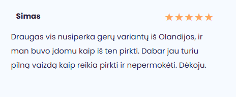 💡 Išmokysiu tave nusipirkti tiesiogiai iš Olandijos, be tarpininkų – tai nėra sudėtinga, kai žinai, kur ir kaip ieškoti ir kitus niuansus.