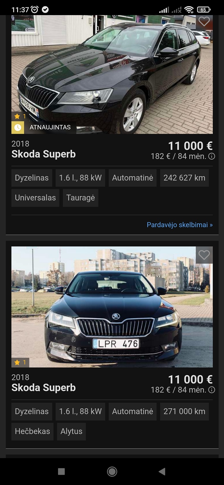 Skoda superb parduodami automobiliai Lietuvoje 2018 metų. Rida nepatvirtinta.