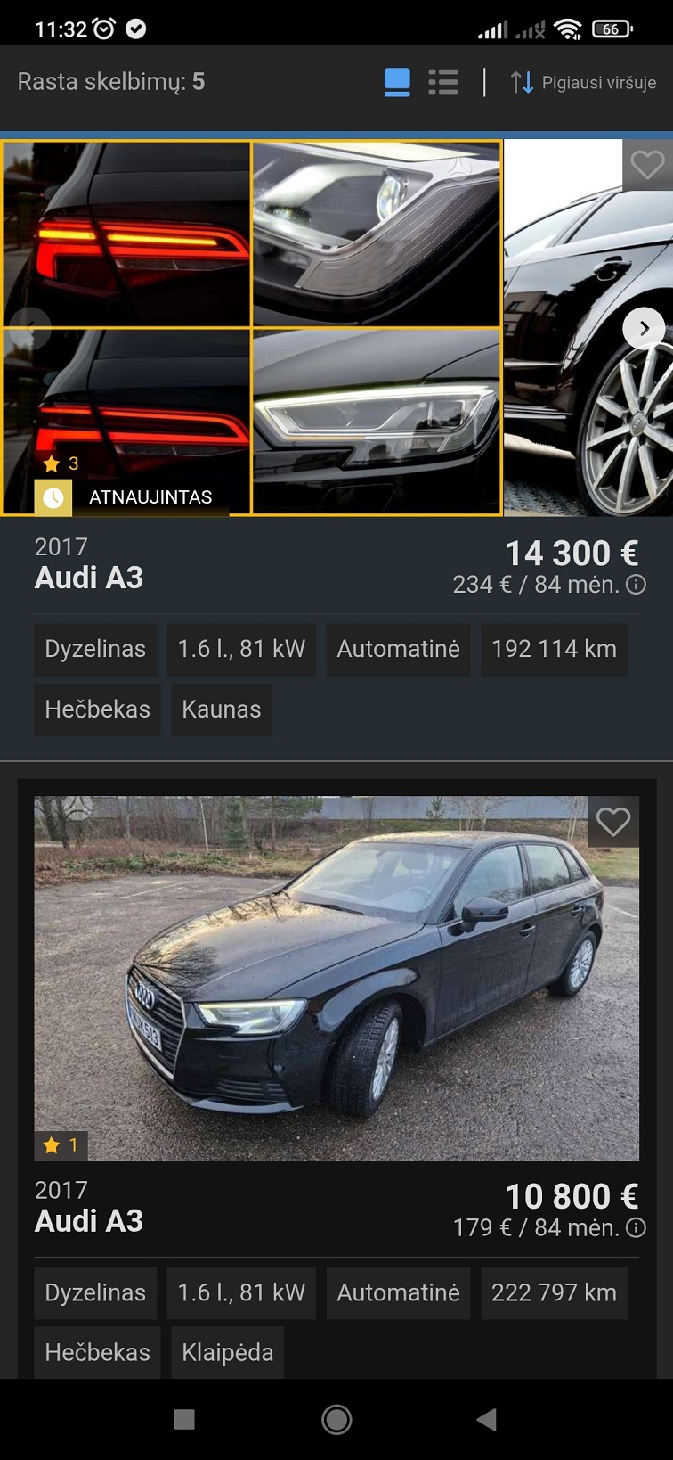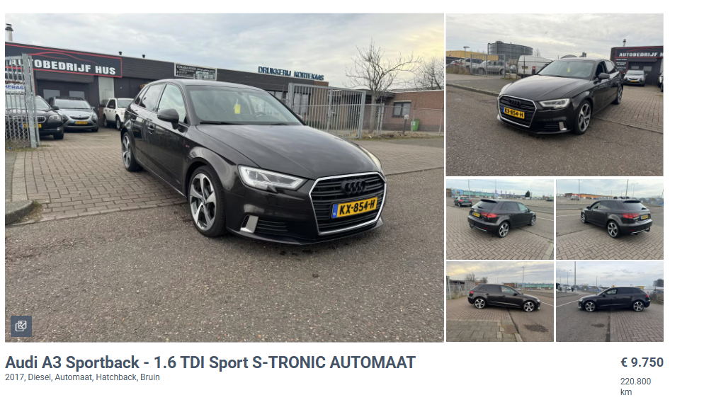 Olandijoje parduodamas Audi A3. S-line apdaila, 2017m. 220k tikra rida. Kaina vietinei rinkai 9750 Eur, Exportui į LT kaina būtų 8000-8500 Eur, priklausomai nuo derybų (nes yra bpm automobilis).